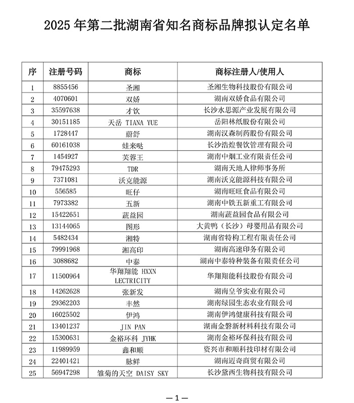 湖南省商标品牌协会关于认定 2025年第二批湖南省知名商标品牌的公示